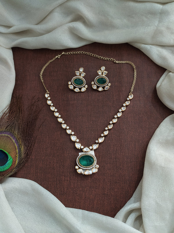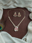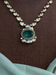 A graceful and delicate Polki Kundan necklace set, designed with semi-precious stones for a timeless appeal. Available in four elegant colors — ruby, green, mint, and baby pink. Comes with matching earrings, making it a perfect choice for festive wear, weddings, or party looks.