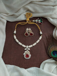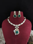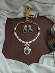 A designer Polki Kundan Hasli set, beautifully embedded with pearls all around and crafted with premium Polki Kundan stones. Available in four elegant colors — green, ruby, mint, and baby...
