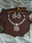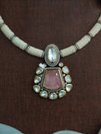 A designer Polki Kundan Hasli set, beautifully embedded with pearls all around and crafted with premium Polki Kundan stones. Available in four elegant colors — green, ruby, mint, and baby...