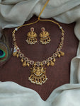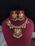 Embrace prosperity, divine grace, and timeless elegance with Sonal Fashion's captivating Lakshmi Ji & Peacock Antique Necklace Set! Collection: Antique Stones: Kemp / Green A Symphony of Symbolism and Exquisite...