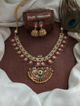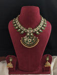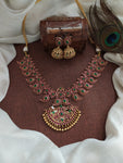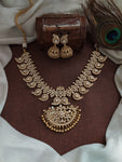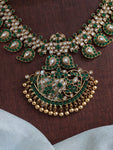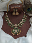 Indulge in timeless beauty with our Dual Peacock Floral Design Kemp Stones Necklace Set. This exquisite piece from our Antique Collection features intricately crafted dual peacock motifs adorned with stunning...