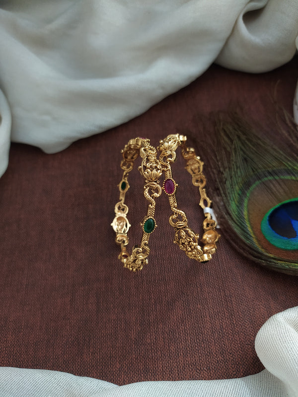 Design & Specifications: Embrace the timeless elegance of these captivating antique bangles, adorned with a stunning array of gemstones. Crafted with meticulous attention to detail, these bangles boast a captivating...