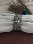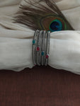 Description: "Discover radiant choices with our collection of German Silver Oxidised Bangles, available in three captivating variations - white, red with green. These bangles come in three versatile sizes -...