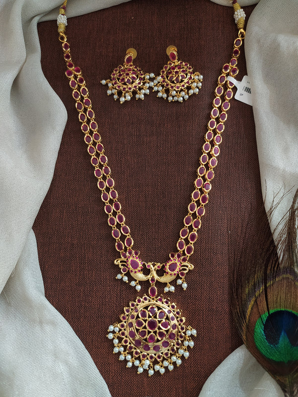A stunning gold-plated zircon double-layered necklace set crafted with sparkling CZ stones for a premium diamond-like shine. Available in beautiful color options including Ruby, Green, White, Black, Champagne, and Ruby-Green,...
