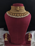 Unveil the epitome of opulence with our captivating Divine Elegance Kundan & Kemp Stone Heavy Choker Set, a masterpiece from the Antique Collection. This exquisite set features a mesmerizing blend...