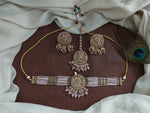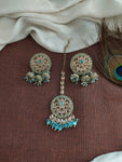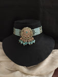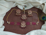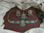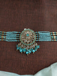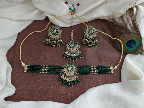 Add a festive sparkle to your look with this beautiful beaded choker set in elegant Mehendi polish. Designed for party wear and festive occasions, this set includes a choker, matching...