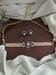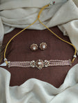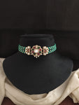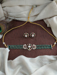 Elegant Victorian finish choker sets crafted with premium moissanite stones and side bead detailing. Available in multiple color combinations, these versatile chokers are perfect for brides, festive occasions, and statement party looks. Comes with matching earrings.