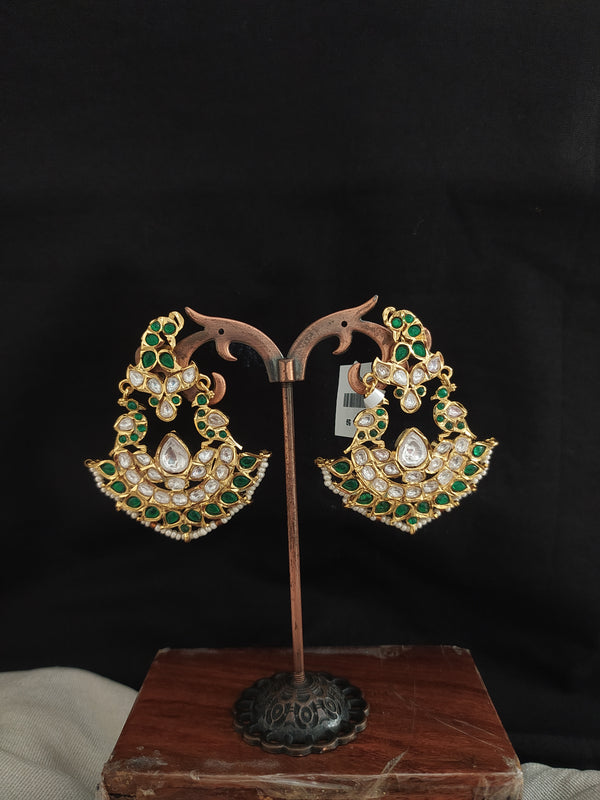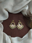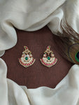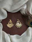 Blending tradition with modern artistry, these Peacock Designed Fusion Earrings are crafted with Moissanite and Kundan stones, radiating timeless charm. Available in two stunning combinations—green with white for a classic touch...
