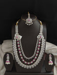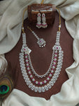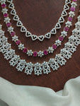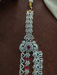 This exquisite Zircon Layered Haram Set is crafted in a diamond finish (two-tone gold with silver) for luxurious appeal. Adorned with ruby and white zircon stones, this set features an elegant layered design that adds grandeur...