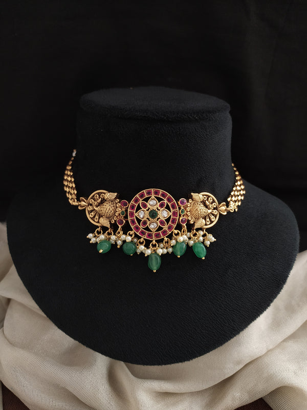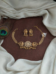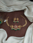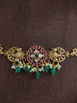 An intricately crafted Antique Elegant Choker Set that exudes timeless grace and tradition. Designed with detailed antique work, this choker features stunning kemp and kundan stones, creating an eye-catching blend...