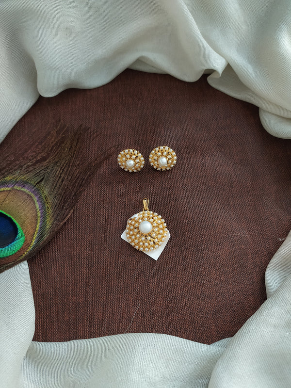 A timeless and elegant pearl pendant set paired with matching pearl stud earrings. Designed in a sleek minimal style, this set is perfect for daily wear, office looks, festive outfits,...