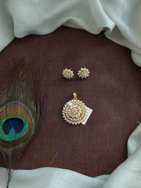 A timeless and elegant pearl pendant set paired with matching pearl stud earrings. Designed in a sleek minimal style, this set is perfect for daily wear, office looks, festive outfits,...