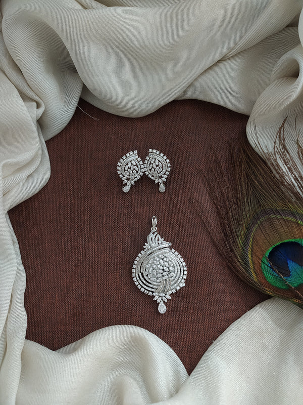 Elevate your jewelry collection with the exquisite Silver Rhodium Zircon Pendant Set. Designed with dazzling zircon stones, this set offers a sleek and modern touch to any ensemble. The shimmering...