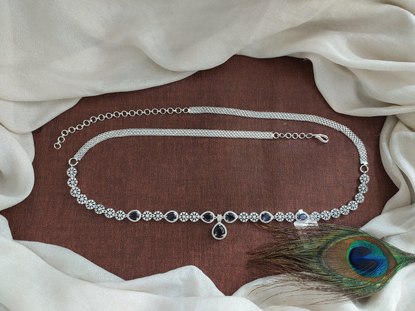 Elevate your traditional ensemble with this exquisite Zircon Hip-Chain, crafted in a sleek silver (rhodium) finish. Available in two enchanting colors—violet and green—this hip-chain exudes elegance and charm. Designed with...