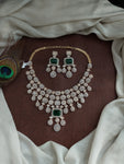 This Bridal Heavy Zircon Necklace Set is a true statement piece, designed to dazzle. Crafted with high-quality white zircon stones and accentuated by colored center stones in red, green, blue, mint,...