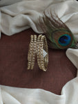 Reveal your radiant charm with our exquisite Uncut Polki Mehandi Bangles, a set of 4 meticulously crafted pieces that add grace and style to your attire. Perfect as side bangles, these...