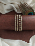 Reveal your radiant charm with our exquisite Uncut Polki Mehandi Bangles, a set of 4 meticulously crafted pieces that add grace and style to your attire. Perfect as side bangles, these...