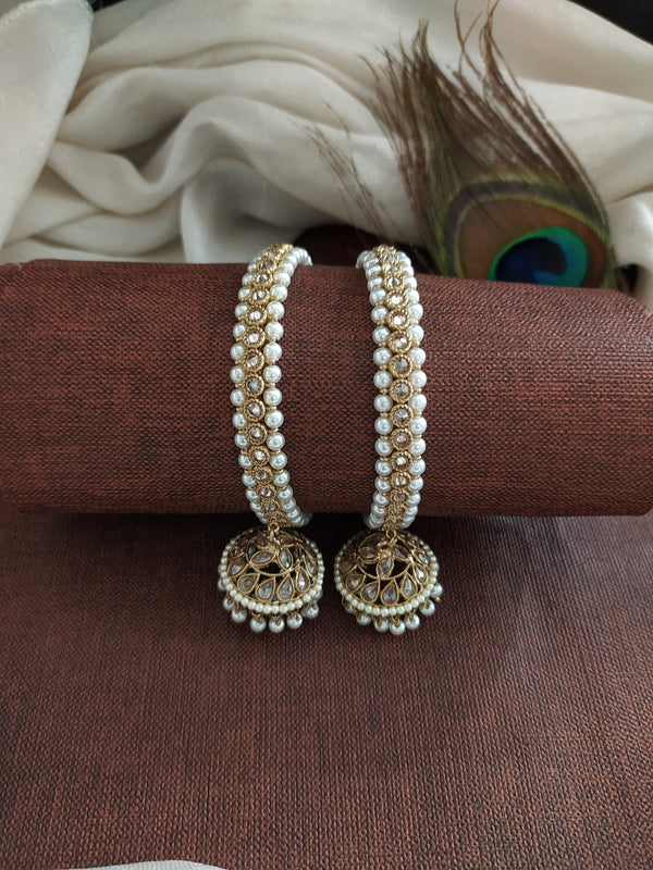 Elevate your bridal elegance with our exquisite Indian Bridal Bangle Set, designed to add a touch of royalty to your wedding look. Design: This set features stunning Pearl Kundan Jhumki...