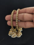 Elevate your bridal elegance with our exquisite Indian Bridal Bangle Set, designed to add a touch of royalty to your wedding look. Design: This set features stunning Pearl Kundan Jhumki...