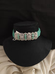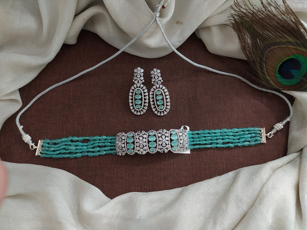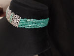 Exude elegance with this Zircon Choker Set, crafted with dazzling white and mint zircon stones, perfectly complemented by delicate side mint color beads. The intricate design and refined craftsmanship make this...