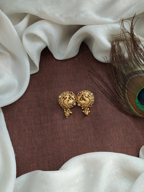 Embrace timeless elegance with our Antique Finish Peacock Designed Studs, intricately crafted to showcase a majestic peacock design. These studs feature fine detailing and an antique finish, making them a perfect...