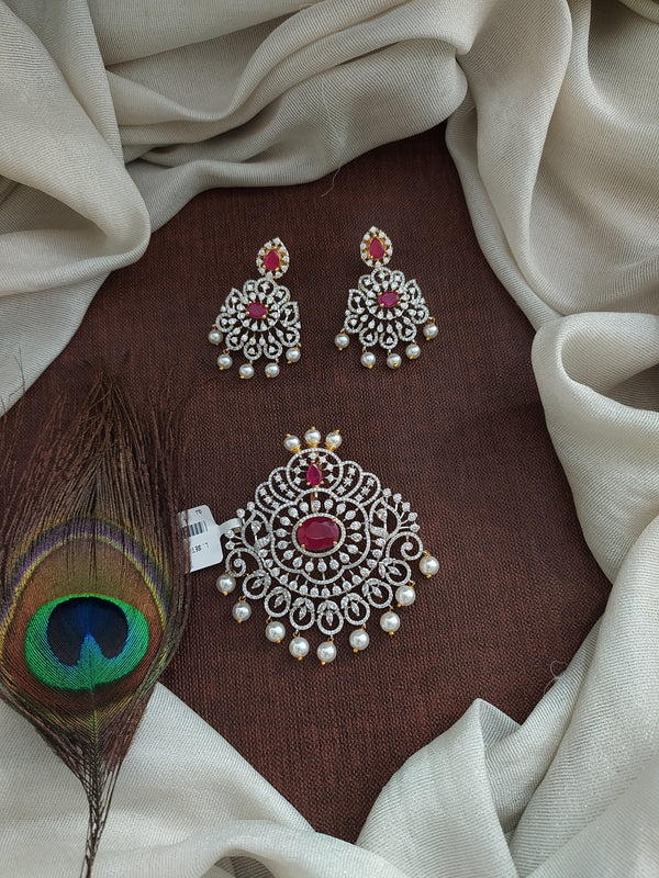 Exuding timeless charm, this diamond finish (two-tone gold with silver) zircon pendant set is crafted with elegant white zircon stones encircling dual center stones in vibrant hues. Accented with delicate...