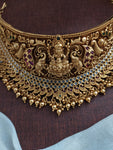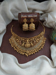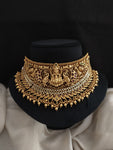Celebrate tradition with this Antique Nakshi Lakshmi Choker Set, intricately crafted with divine Lakshmi motifs and golden hangings. Paired with a matching jhumki, this set embodies timeless elegance, making it ideal...