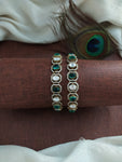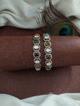 These stunning Moissanite Bangles in a Victorian finish are a perfect fusion of elegance and tradition. Designed with intricate craftsmanship, these bangles are available in two sizes—2.4 and 2.6—to provide a comfortable fit. Each bangle is crafted with sparkling moissanite stones and is available in an array of beautiful colors, including Navaratna, Green, Mint, Pink, Ruby, Violet, and White, making it easy to match with any outfit or occasion.