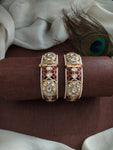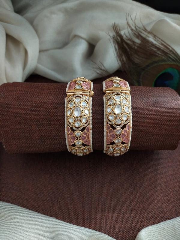 Embrace timeless elegance and the brilliance of fire with the captivating Gold Plated Moissanite Stones Screw Kundan Bangles from Sonal Fashion. Part of our coveted Gold Plated Kundan / Moissanite...