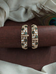 Classic and elegant, this Kundan screw-type kada is crafted in two timeless color combinations: Red with White and Green with White. Designed with precision, it features traditional Kundan stones set...