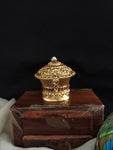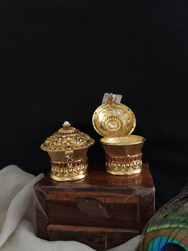 An elegant antique-finish sindoor dabi adorned with ruby and green stones. A perfect traditional accessory for pooja use, festive rituals, or gifting.
