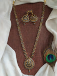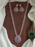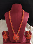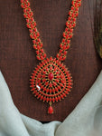 A graceful AD long haram set crafted with real color semi-precious stones, designed to bring rich elegance to traditional and festive looks. Available in striking shades of Full Coral, Full...