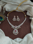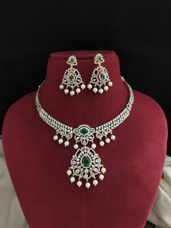 Crafted in a luxurious diamond-tone two-tone finish (silver with gold plating), this zircon necklace set radiates elegance and sophistication. Available in three stunning color options—full white, white with green, and white...