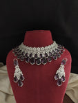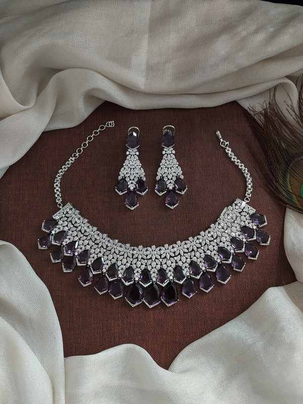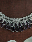Make a statement with this rhodium finish zircon choker set, featuring bold Amethyst (violet) AD stones accented by sparkling white zircon stones. A perfect pick for receptions, parties, or any...
