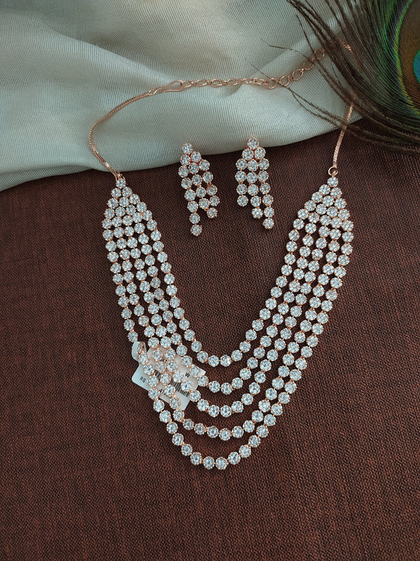 Radiate elegance and charm with the Rose Gold Polished Zircon Five Layer Necklace Set. This exquisite ensemble features five layers of delicate chains, each adorned with shimmering zircon stones, intricately...