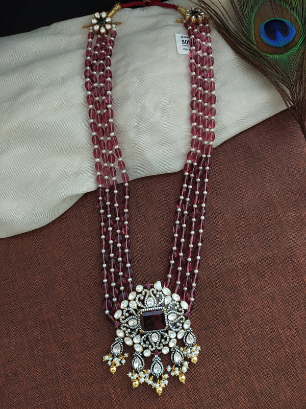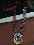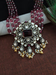 This stunning mala set features a vibrant ruby color stone silver monzonite pendant, suspended from a beautifully crafted silver chain. The matching earrings are simple yet elegant, making them the...