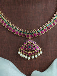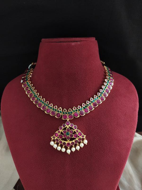 A classic Traditional Araku Kemp Addigai Necklace Set crafted with authentic Araku Kemp stones in a timeless temple jewellery design. Perfect for Bharatanatyam dancers, festive occasions, or traditional looks. The...