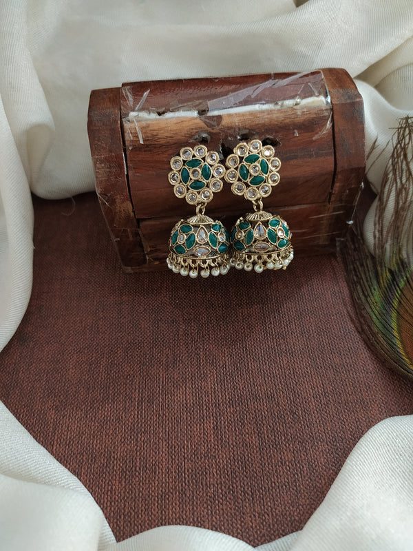 Immerse yourself in the vibrant spirit of Indian tradition with the captivating Uncut Polki Stone Mehandi Jhumki with Pearl Drops, a truly enchanting addition to our coveted Mehandi collection. Each...