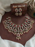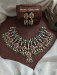 A timeless Victorian finish necklace set crafted with moissanite stones for a dazzling diamond-like look. Perfect for receptions, engagements, and festive occasions. Comes with matching earrings for a complete statement...