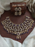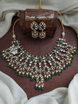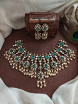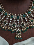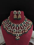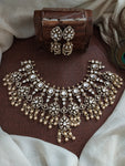 A timeless Victorian finish necklace set crafted with moissanite stones for a dazzling diamond-like look. Perfect for receptions, engagements, and festive occasions. Comes with matching earrings for a complete statement...