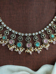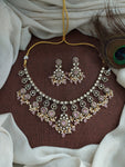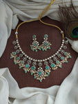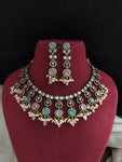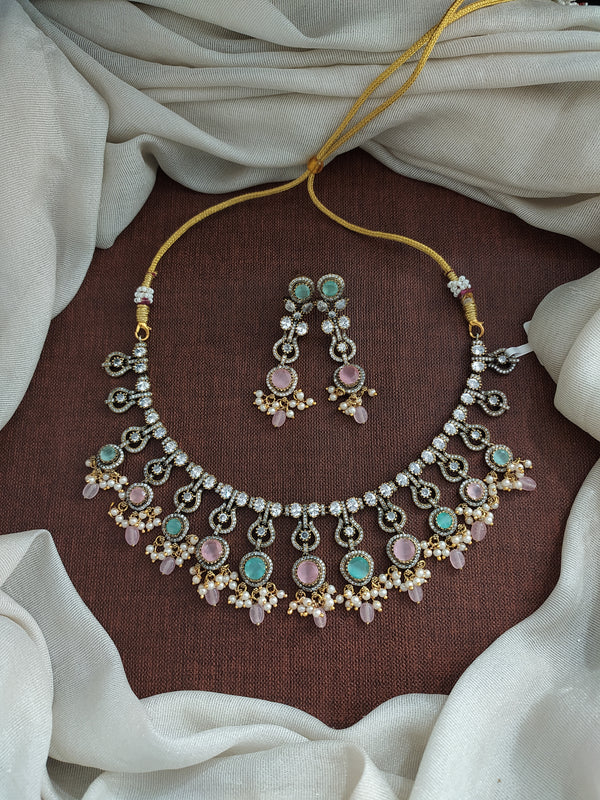 A timeless Victorian finish necklace set crafted with moissanite stones for a dazzling diamond-like look. Perfect for receptions, engagements, and festive occasions. Comes with matching earrings for a complete statement...