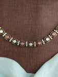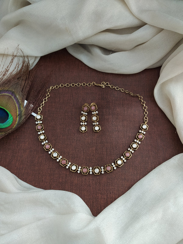 A stunning Victorian finish necklace set crafted with moissanite stones, designed to give a rich diamond look at a budget-friendly price. Perfect for weddings, parties, or festive occasions. Comes with matching earrings.