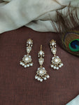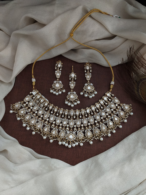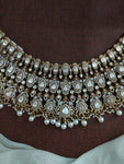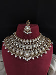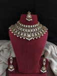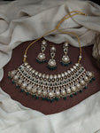 A stunning violet Polki Kundan choker set in Victorian finish, designed with premium stones for a royal look. Comes with matching earrings. Perfect for weddings, receptions, and festive occasions.