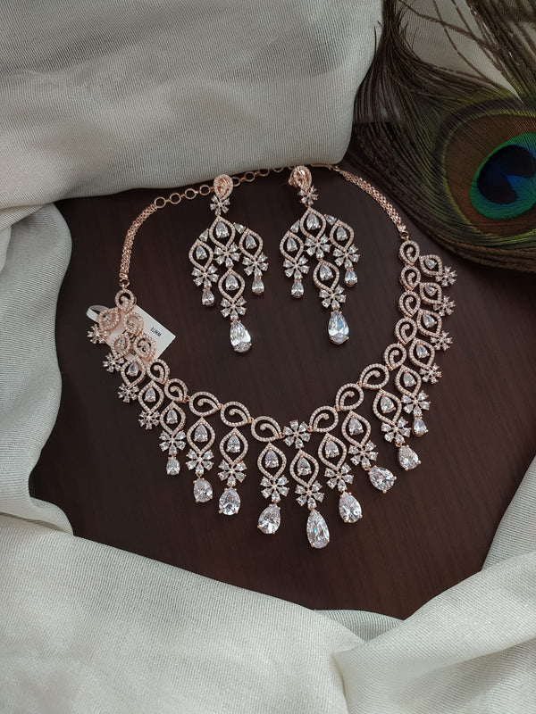 "Elevate your jewelry collection with our stunning necklace and earring set. Boasting a modern, eye-catching design, this accessory is the perfect finishing touch to any outfit."