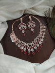 "Elevate your jewelry collection with our stunning necklace and earring set. Boasting a modern, eye-catching design, this accessory is the perfect finishing touch to any outfit." Available in Blue, Ruby,...