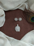 Elegant zircon pendant set crafted with premium CZ stones for a sleek diamond-like look. Comes with a matching pair of earrings, making it perfect for daily wear, parties, and festive...