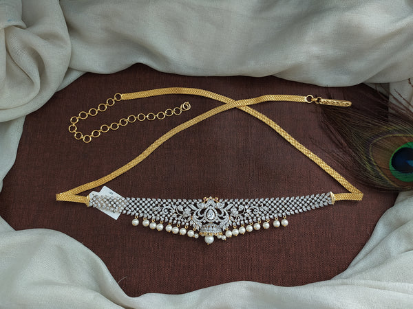 Complete your ethnic or bridal look with this stunning zircon hip chain in diamond finish (a premium two-tone gold and silver finish inspired by real diamond jewelry). Designed with elegant...